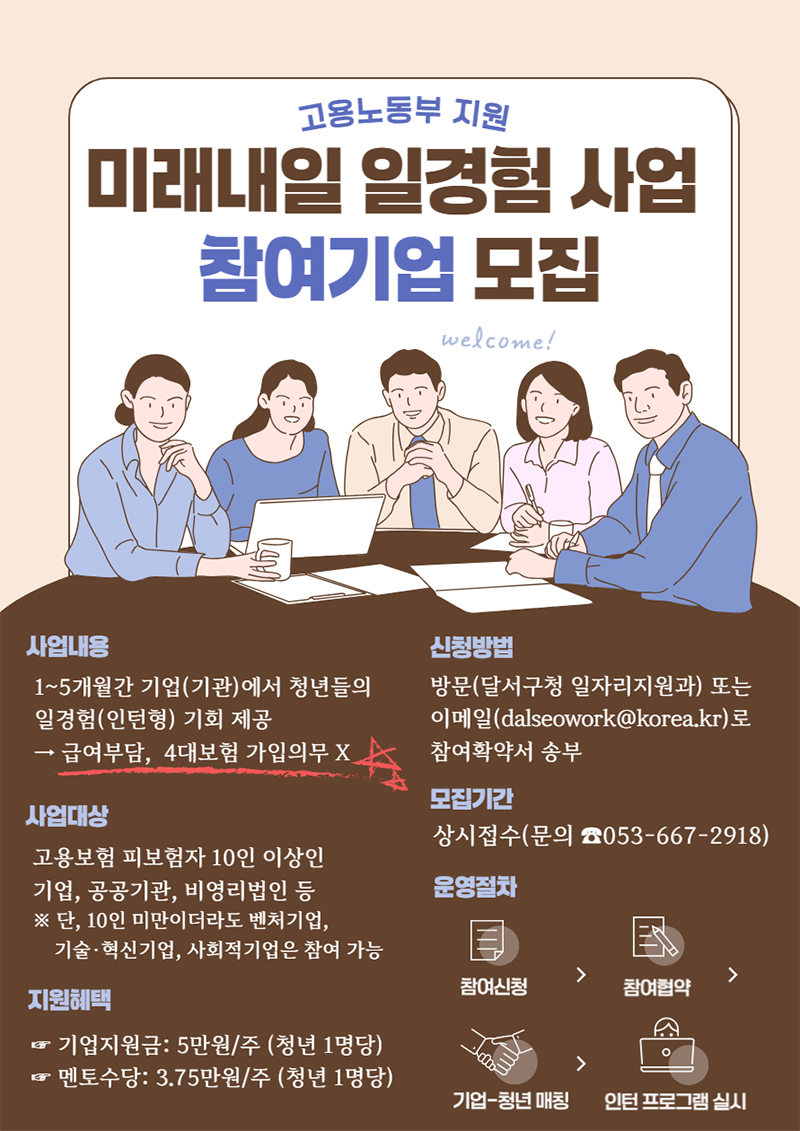 2025년 「미래내일 일경험(인턴형) 사업」의 참여희망기업을 모집하오니, 관심있는 기업들은